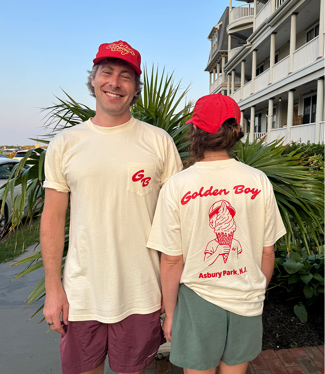 Golden Boy scoops New Zealand-style ice cream on the Jersey Shore boardwalk.