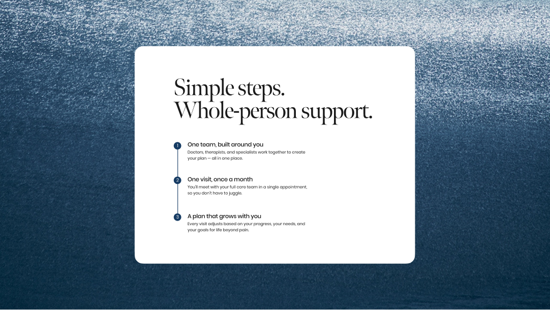 Lifekind needed a HIPAA-compliant website that felt welcoming rather than clinical. Our objective was to reframe chronic pain treatment as a restorative experience, evoking the atmosphere of a spa and the promise of a renewed quality of life.