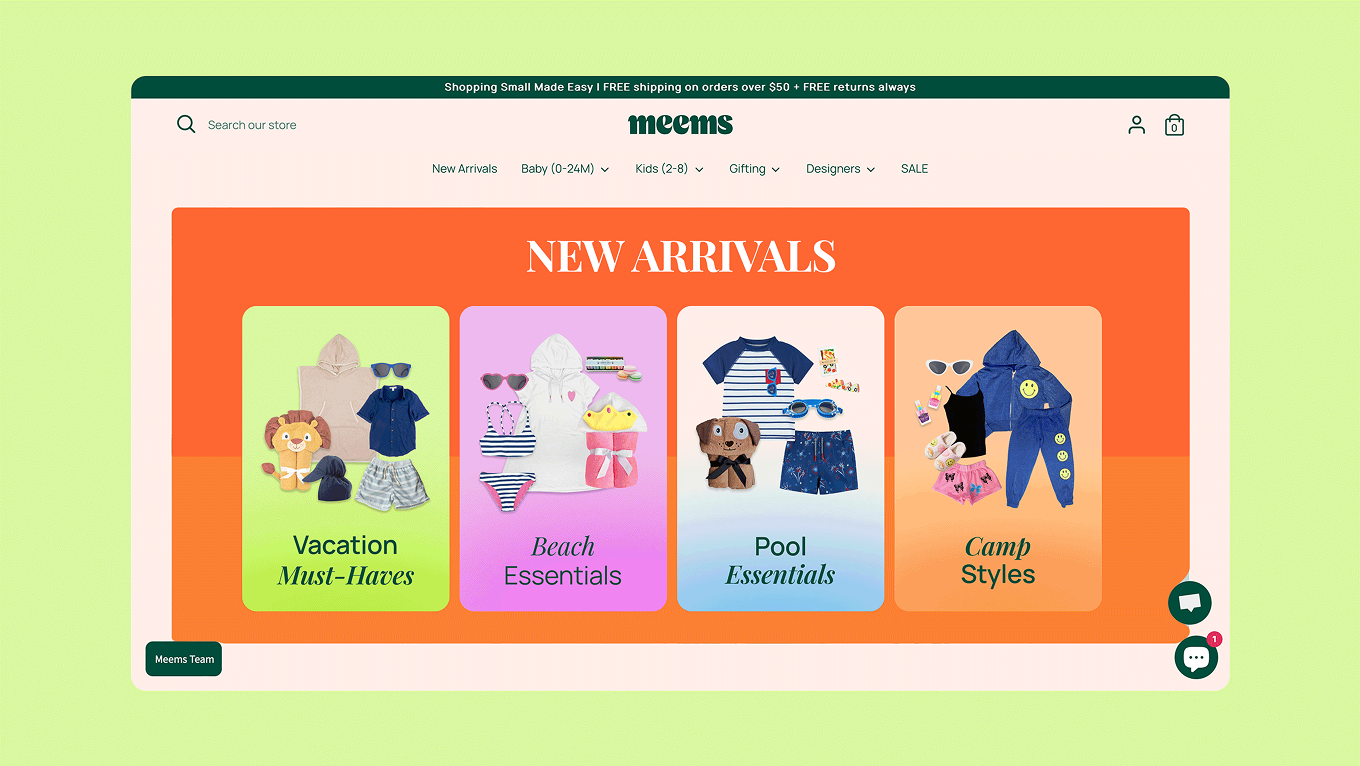Meems needed digital assets and strategy to better engage their growing audience. The challenge: visuals playful enough for kids while remaining clear and easy to shop for parents. Creativity that enhances conversion rather than distracting from it.