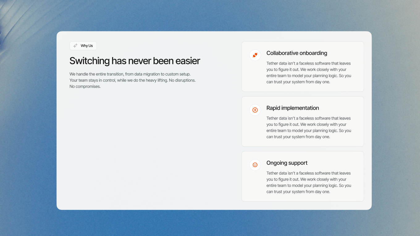 Tether came to us to elevate their digital presence into something more mature, refined, and forward-thinking. Inventory management has gone largely unchanged as an industry and we wanted the site to show thatsomething better was finally here.